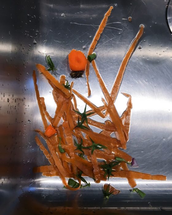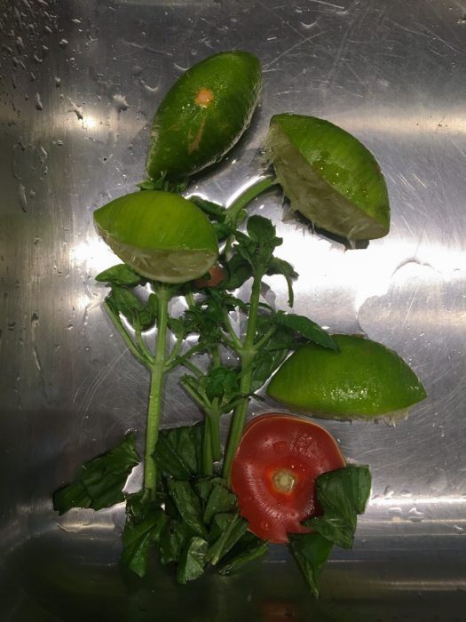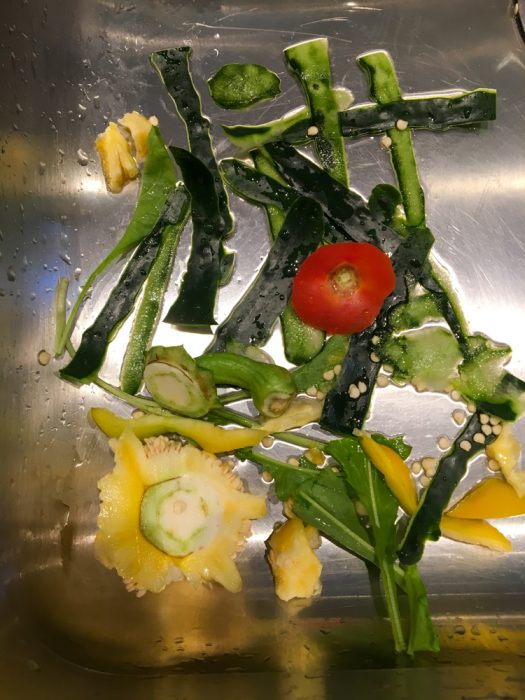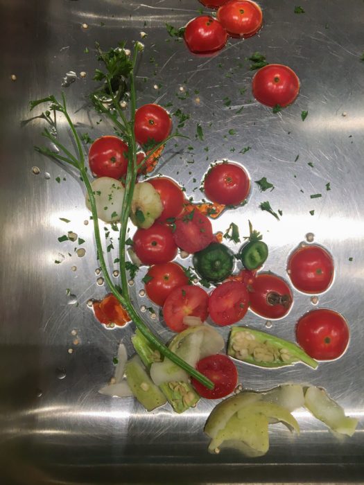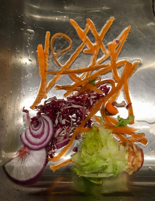 This portfolio began with delight in my new garden; watching little seeds become beautiful plants then delicious dinners and rich compost. I photographed it all. My photographs of lettuce soaking in the sink and freshly peeled cucumber have evolved (devolved?) into nightly shots of the remains of dinner prep in the kitchen sink — whether I’d grown the veggies myself or not. I admit to “arranging” the scraps to improve the composition, but minimally, usually just to get it all in the frame. Things are lovely without my help: the curl of a peeling, starkness of a stem, the interplay of colors against stainless steel.
